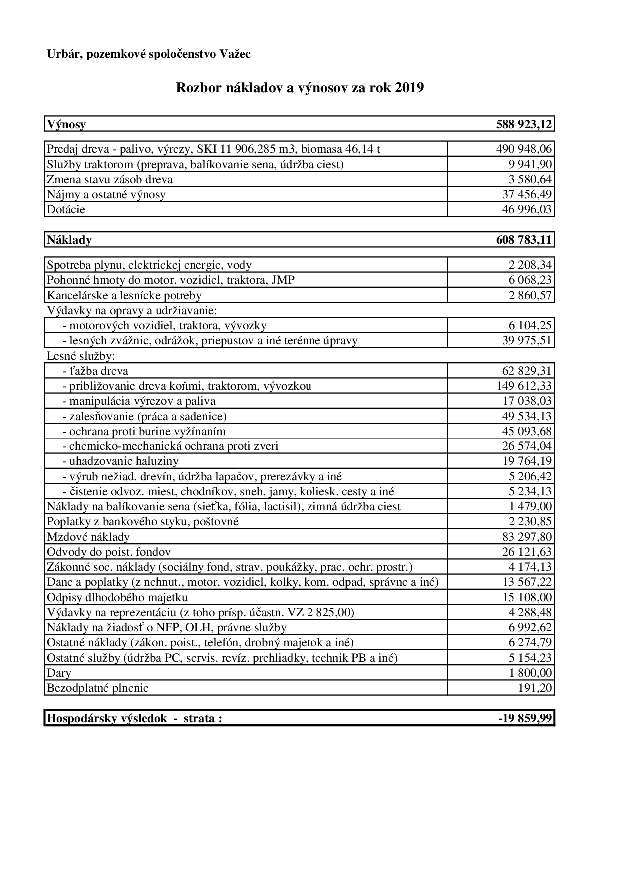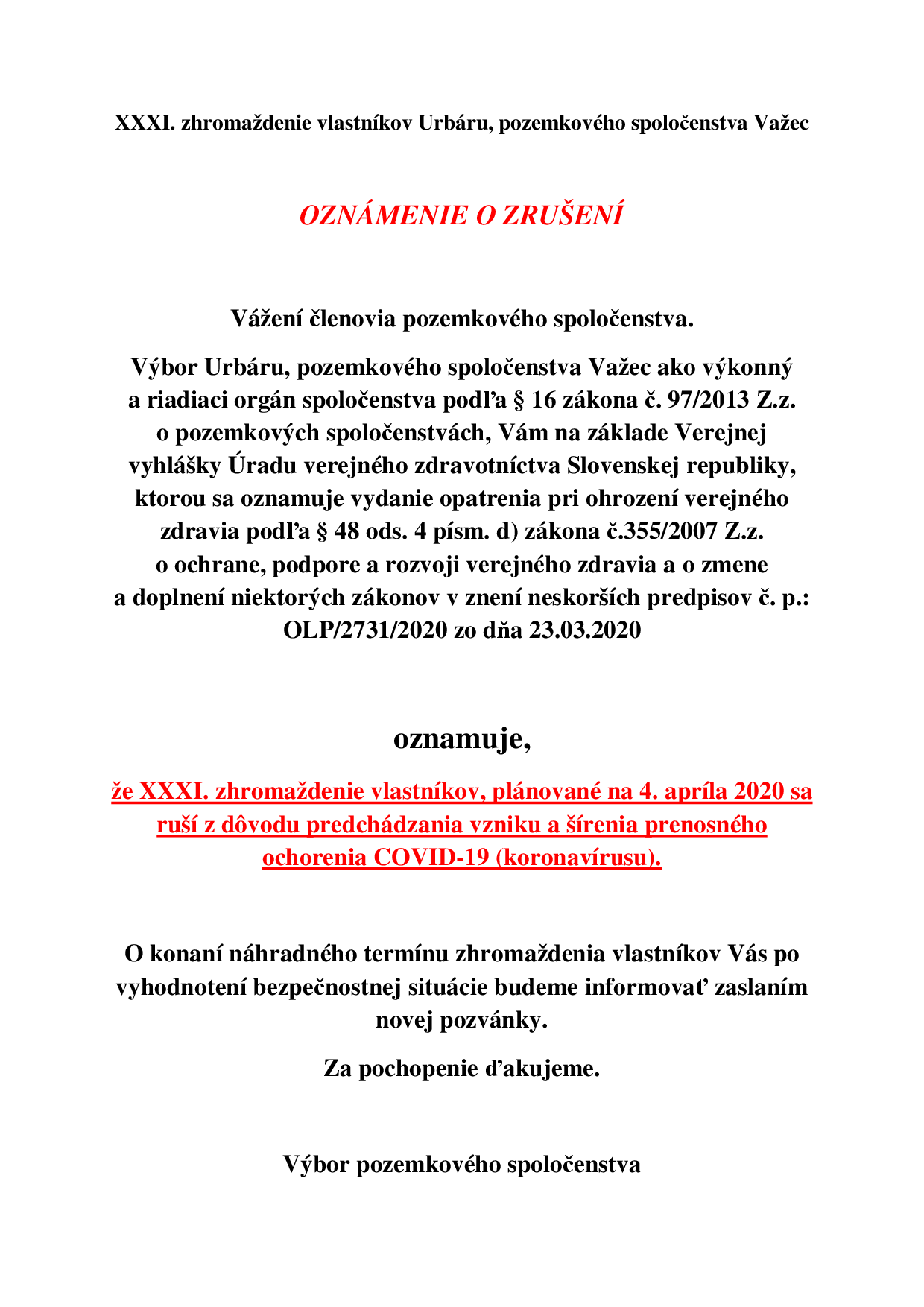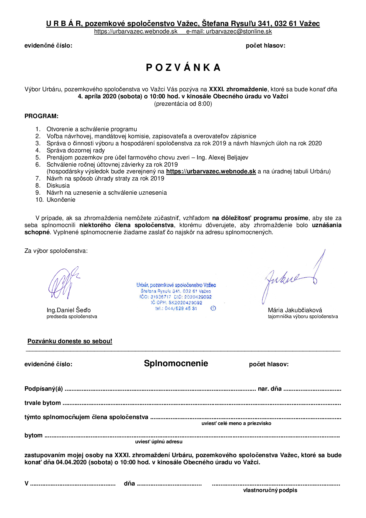 XXXI. zhromaždenie - pozvánka a hospodársky výsledok 2019